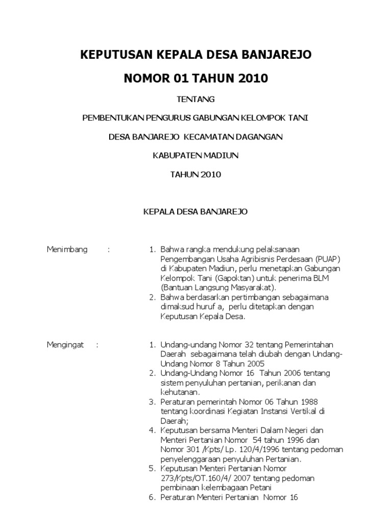 Pos pelayanan terpadu 10 perumahan luhur asri desa makmur jaya, kecamatan gondang. Dalam rangka permutakhiran data indeks desa membangun (idm) tahun 2021 akan dilakukan perbaikan data desa berbasis sdgs. Keputusan kepala desa ini mulai berlaku pada tanggal ditetapkan denagn ketentuan akan di adakan perbaikan sebagiamana mestinya, apabila dikemudian hari terdapat kekeliruan. Sk penerima jamban masyarakat 2018 : Surat keputusan (sk) kepala desa merupakan salah satu bentuk administrasi desa.